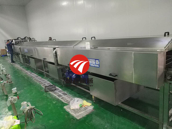 廣西客戶來廠考察火龍果噴淋清洗機效果都豎大拇哥