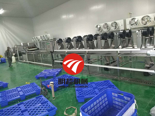火龍果清洗后,需要進行風干瀝水,下面這個圖片就是風干瀝水機,用的是一條網帶,方式火龍果損傷。